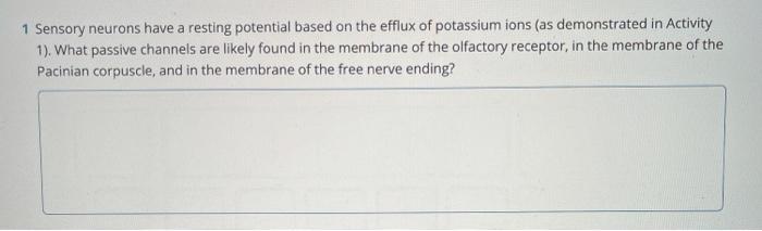 Solved 1 Sensory Neurons Have A Resting Potential Based On Chegg Com